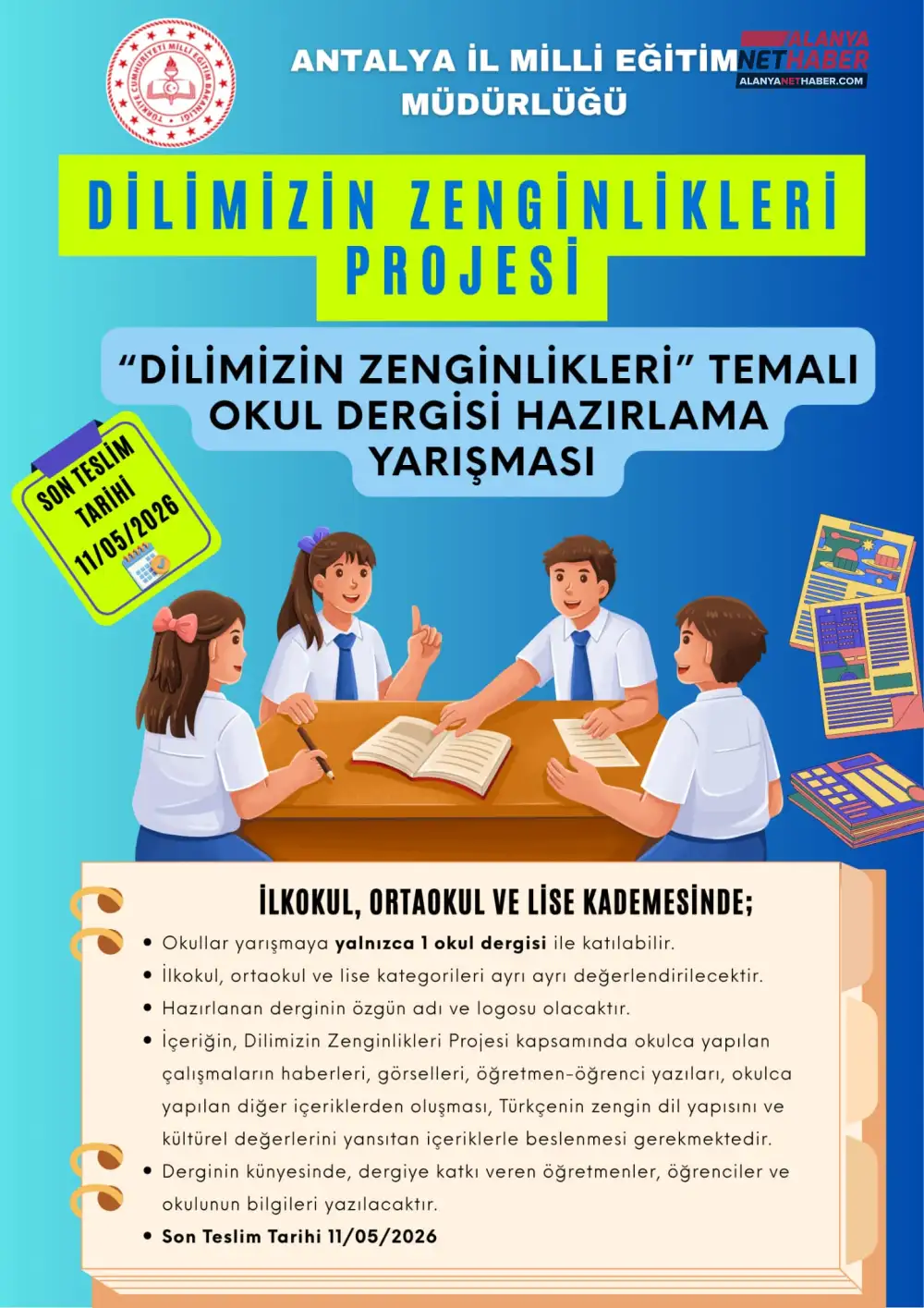Antalya İl Milli Eğitim Müdürlüğü öncülüğünde, öğrencilerin Türkçenin zenginliklerini yansıtacağı okul dergisi hazırlama yarışması başladı.