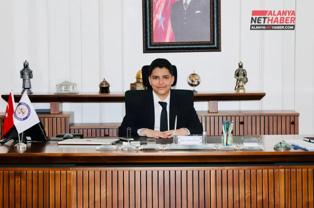 Alanya Kaymakamı Şakir Öner Öztürk, 23 Nisan Ulusal Egemenlik ve Çocuk Bayramı kapsamında makamını şehit oğlu Cengizhan Aksoy’a devretti.