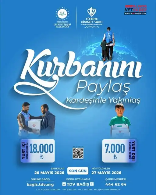Türkiye Diyanet Vakfı (TDV) koordinasyonunda yürütülen vekaletle kurban kesim organizasyonunun 2026 yılı detayları belli oldu. Alanya Müftülüğü, "Kurbanını Paylaş Kardeşinle Yakınlaş" temasıyla düzenlenen kampanya kapsamında güncel bağış rakamlarını ve son başvuru tarihlerini kamuoyu ile paylaştı.