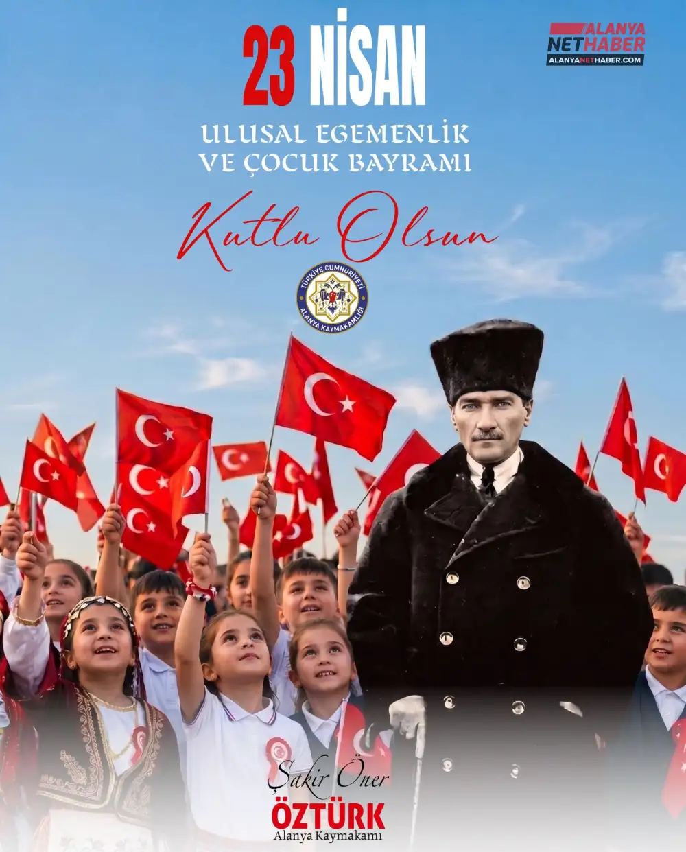 Alanya Kaymakamı Şakir Öner Öztürk, 23 Nisan Ulusal Egemenlik ve Çocuk Bayramı dolayısıyla bir kutlama mesajı yayımladı. Mesajında, milli iradenin kalbi olan TBMM'nin açılış yıl dönümünü büyük bir gururla kutladıklarını belirten Öztürk, çocuklara duyulan güvenin altını çizdi.
