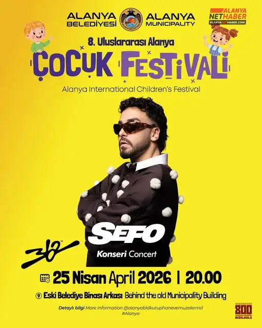 Alanya Belediyesi, 8. Uluslararası Çocuk Festivali ile bölge halkına müzik dolu bir akşam sunmaya hazırlanıyor. Etkinlikler çerçevesinde, son dönemin sevilen sanatçılarından Sefo, 25 Nisan 2026 Cumartesi günü saat 20.00'de sahne alarak katılımcılara coşku dolu anlar yaşatacak.