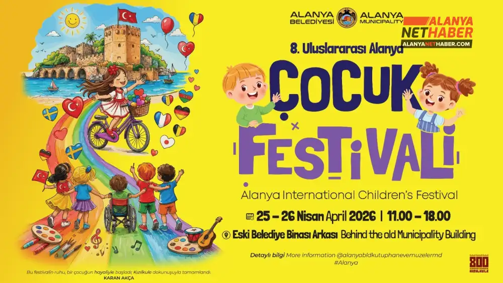 Alanya Belediyesi, 23 Nisan Ulusal Egemenlik ve Çocuk Bayramı kutlamaları kapsamında geleneksel hale getirdiği Uluslararası Alanya Çocuk Festivali’nin kapılarını bu yıl 8. kez açıyor. Etkinlikler, 25-26 Nisan 2026 tarihlerinde Eski Belediye Binası Arkası mevkiinde gerçekleştirilecek. Kentin sosyal dokusuna ve çocukların gelişimine büyük katkı sunan festival, bölgedeki aileler ve turistler için önemli bir cazibe noktası oluşturacak.