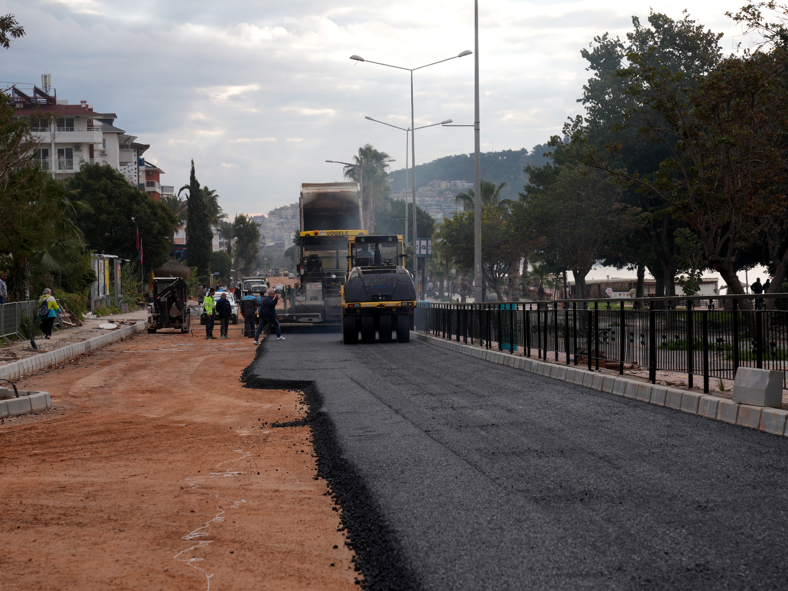 Alanya Belediyesi’nin koordinesinde 6 altyapı firmasıyla birlikte yürütülen Atatürk Caddesi yenileme çalışmalarında sıcak asfalt süreci başladı. Alaaddin Keykubat Parkı ile Türkmenbaşı Sokak arasındaki ilk etapta Fen İşleri Müdürlüğü ekipleri tarafından sıcak asfalt serimi yapılıyor. Çalışmaların kısa sürede tamamlanarak etap etap trafiğe açılması planlanıyor.