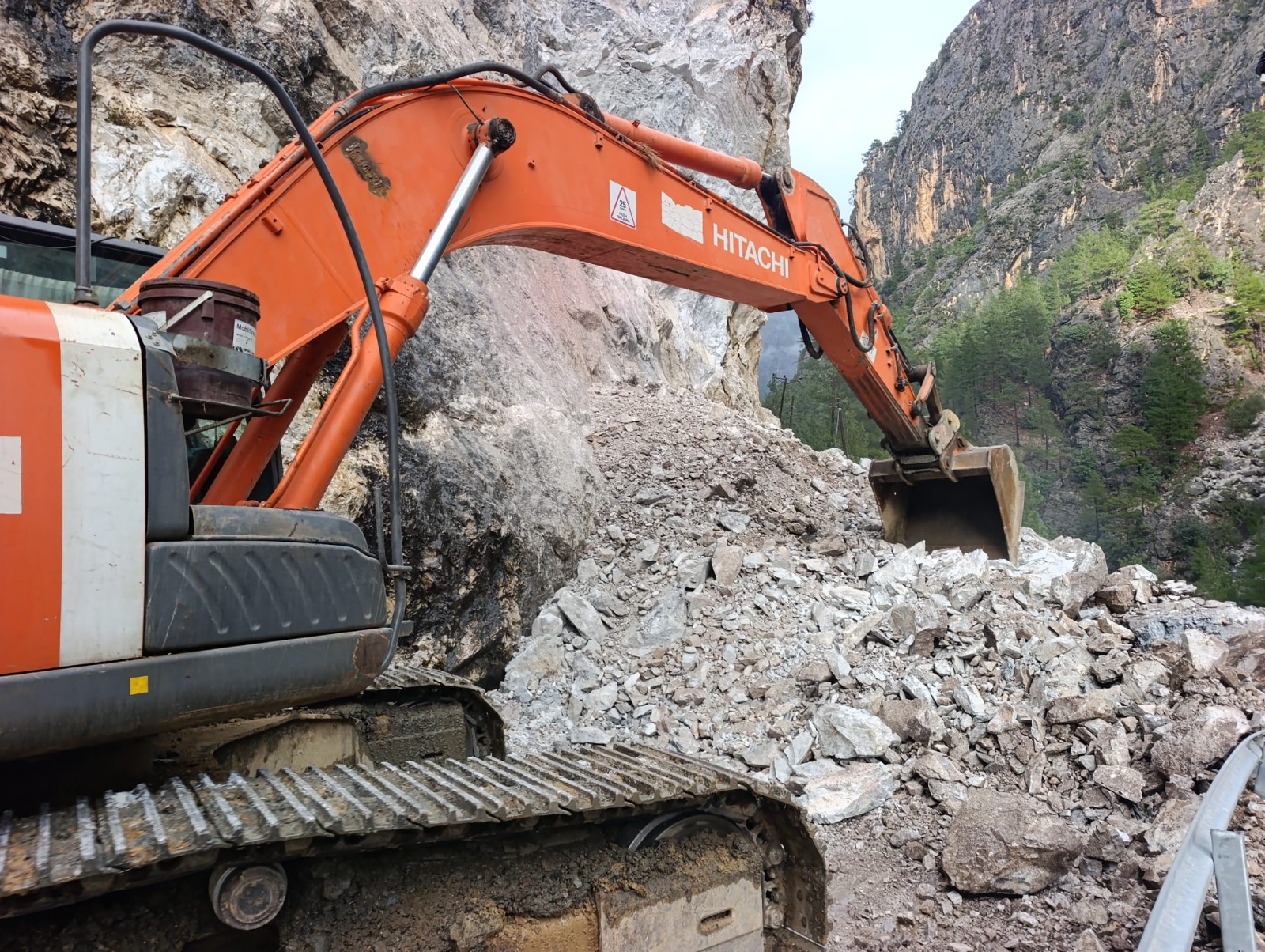 Alanya’nın Dim Vadisi bölgesinde etkili olan aşırı sağanak, Alacami Mahallesi grup yolunda heyelana neden oldu. Vadinin sarp yamaçlarından kopan tonlarca ağırlığındaki dev kaya parçaları ve toprak yığını, yolu tamamen kapatarak mahallenin ilçe merkeziyle olan bağlantısını kesti. İhbarın ardından Antalya Büyükşehir Belediyesi Alanya Hizmet Birimi Şube Müdürü Gazi Öten ve Yol Yapım, Bakım ve Onarım Dairesi ekipleri hızla bölgeye intikal etti.