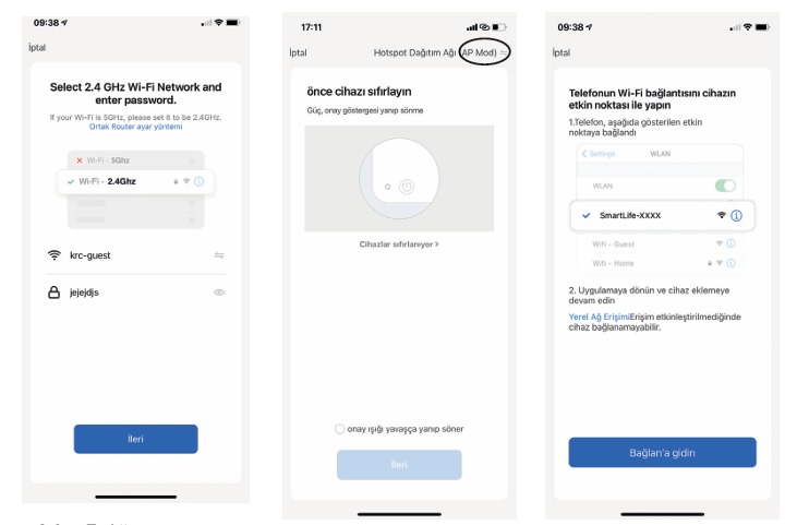 Kurulum yaptığınız telefon 2.4 GHz WiFi ağına bağlı olmalıdır (5 GHz desteklenmez).