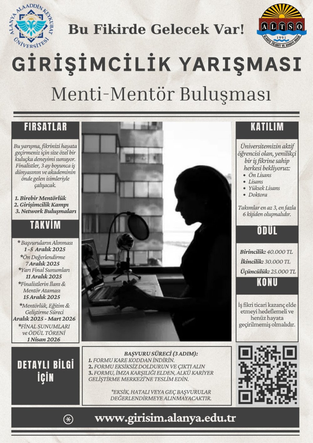 Alanya Alaaddin Keykubat Üniversitesi (ALKÜ) ile Alanya Ticaret ve Sanayi Odası (ALTSO) Kadın Girişimciler Kurulu tarafından yürütülen “Bu Fikirde Gelecek Var! Girişimcilik Yarışması” ikinci kez düzenleniyor. Yarışma, öğrencilerin girişimcilik potansiyelini ortaya çıkarmayı ve inovatif fikirleri iş dünyasının deneyimli isimleriyle buluşturmayı amaçlıyor. Program, mentorluk süreçleri ve geliştirme kampıyla genç girişimcilere geniş olanaklar sunacak.