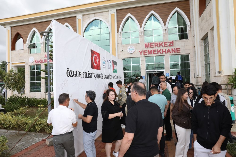 Alanya Alaaddin Keykubat Üniversitesi (ALKÜ) Kestel Yerleşkesinde kurulan “Özgür Filistin, Özgür Gazze için Gönülden Gönüle…” imza platformuna akademisyenler, öğrenciler ve idari personelin desteği sürüyor.