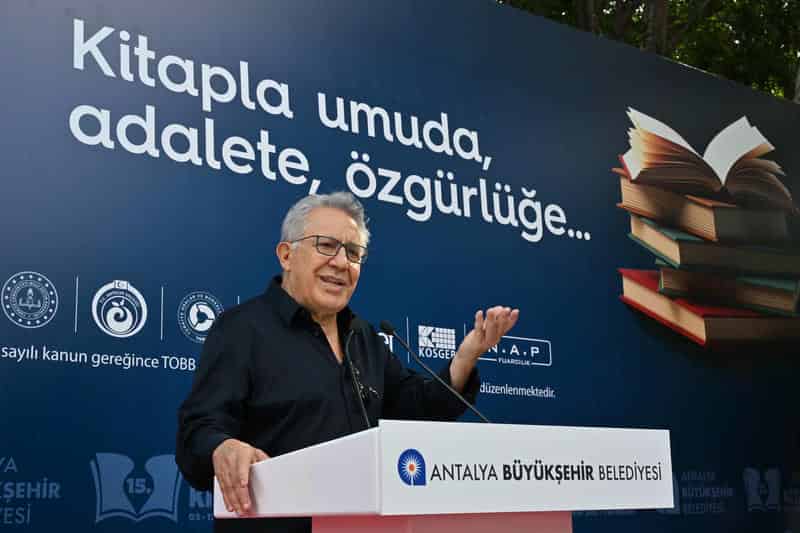 5 Temmuz’dan bu yana tutuklu bulunan Antalya Büyükşehir Belediye Başkanı Muhittin Böcek’in mesajı açılışta okundu. Böcek, “Okumak lazım sloganıyla bir çadırda başlattığımız fuarın bugün 15’incisini yaşıyor olmanın mutluluğunu duyuyorum” ifadelerini kullandı.
